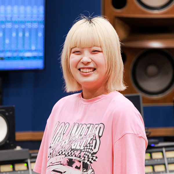 私の卒後ビジョンは、アーティストの楽曲制作へのこだわりに向き合えるレコーディングエンジニアになること。アーティストのイメージ通りの音を形にするため、表現を引き出すコミュニケーション力も磨いています。学内には本格的な録音スタジオがあり、業界で実際に使われている機材に触れながら学んでいます。現役で活躍する講師の先生方から、現場でのリアルな話や機材の使い方を教わることで、将来の自分を具体的に思い描けるようになりました。さらにミュージック科の学生が作曲・演奏した楽曲を私たちが録音・編集し、一枚のCDとして完成させることにも挑戦。他学科と関わる中で、相手が安心して表現できる声のかけ方なども学んでいます。音だけでなく、人とも向き合いながら成長している毎日です。