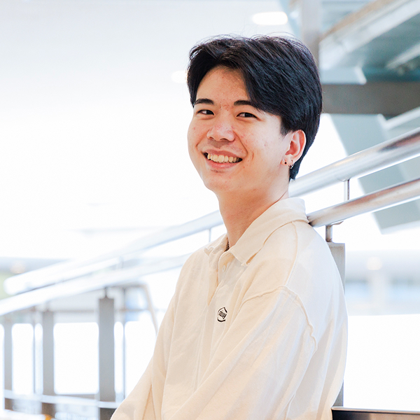 将来は、多くの人の心に届く音楽や映像を発信できる表現者になることが私の卒後ビジョンです。作曲を学びたいと思い入学しましたが、授業でバンドを組んだことをきっかけにギターの魅力に引き込まれ、初心者からプレーヤーの道を志すようになりました。現役で活躍する先生方は、演奏技術だけでなく「ギターで生きていくとはどういうことか」まで教えてくださり、その言葉一つひとつが大きな刺激になっています。さらに映像メディア学科など他学科の学生との交流を通して、音楽表現の可能性も広がりました。現在はライブハウスでの活動にも本格的に挑戦中。ミュージック科での学びと出会いに背中を押されながら、自分だけの音を届けられる存在を目指しています。