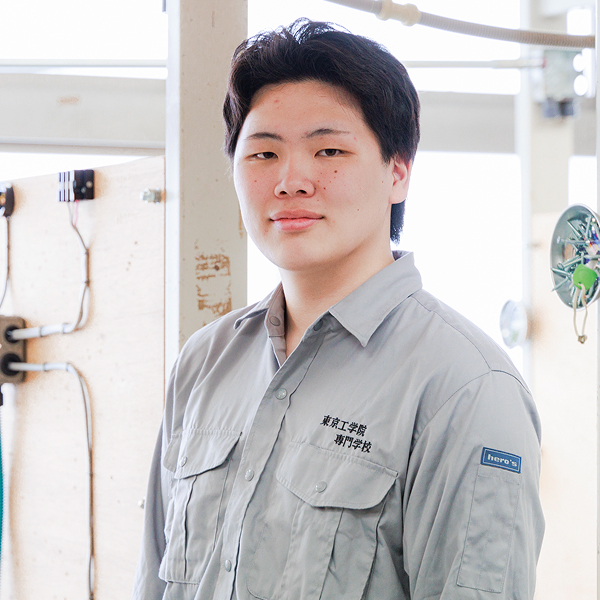私は電気の勉強が好きです。だからこそ、国家資格を取得し、電気の知識をとことん究め、将来はマンションの電気管理に携わりたいと考えています。目指しているのは、電気工事士1種・電気工事士2種・電気主任技術者の3つの資格。取得に向けてわからないことなど、先生に積極的に聞いています。少人数制だからこそすぐに質問でき、先生方も丁寧に教えてくれるので理解が深まります。もともと自分には、座学よりも体を動かしながら覚える実習が合っており、楽しみながら技術も身につけています。さらに大学コースでは、ビジネス文書の書き方や社会人としての常識とマナーも学んでいます。